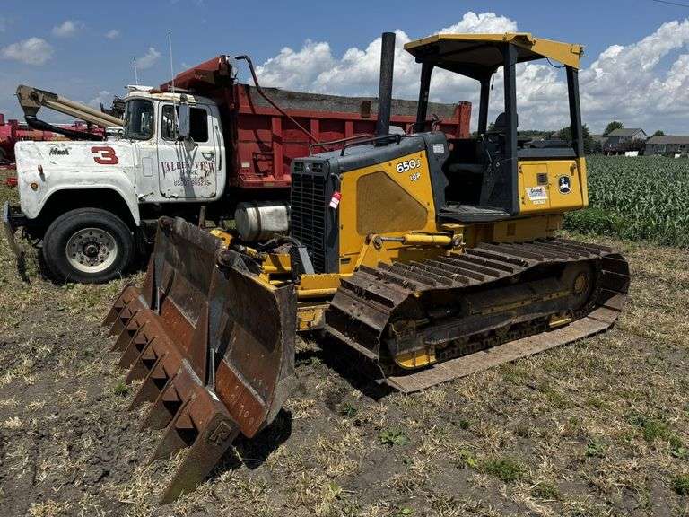 John Deere 650J LGP Crawler Dozer, PIN: T0650JX132507, 28'' Wide Tracks, 10' Blade, Rockland Root Rake Model: BR, Hydrostatic Transmission, 6-way blade, 90 hp, all new undercarriage approx. 2 years ago (approx 200 hours ago): chains, sprockets, bogie wheels, idlers, track pads. 4553 hours showing, S/N: 6815401