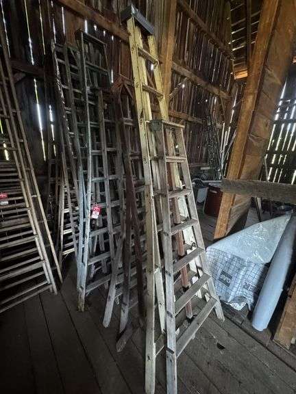 ASSORTED ORCHARD TRI-LADDERS, WOODEN, ASSORTED SIZES (15)