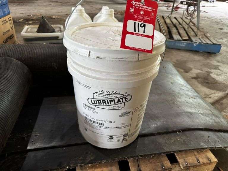 FOOD GRADE GREASE 5-GALLON TUBE FOOD GRADE GREASE (16), PAD SAFE, APPROX. 3-GALLONS, PADS (2), PAD BEADS, PAD SLINGS SHORT (2), LONG SLING