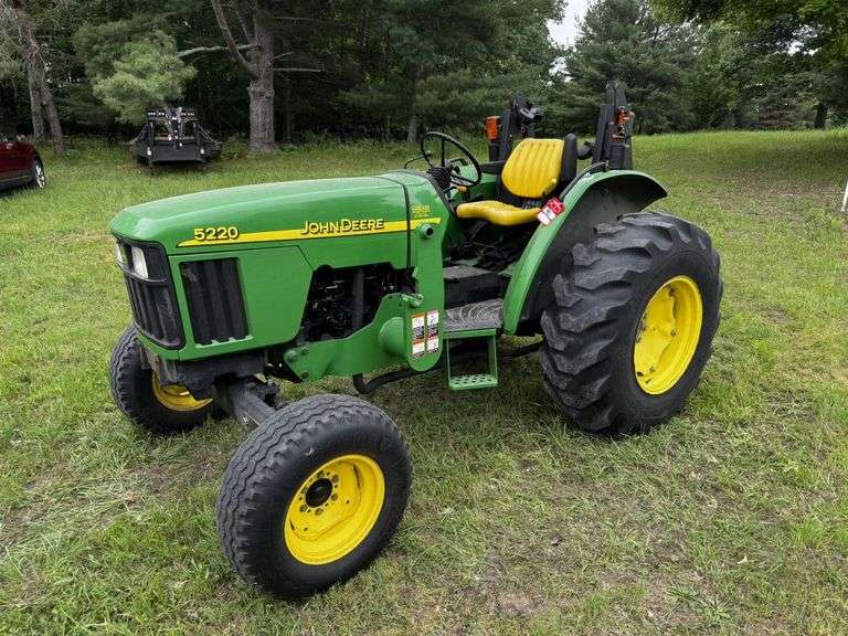 2004 JOHN DEERE 5220 TRACTOR, 2WD, 3PT, PTO, 2-REAR REMOTES, 2 MID REMOTES, JOYSTICK, POWER REVERSER, 16.9-24 REAR TIRES, 11L-15 FRONT TIRES, 2123 HOURS SHOWING, S/N: LV5220K429005