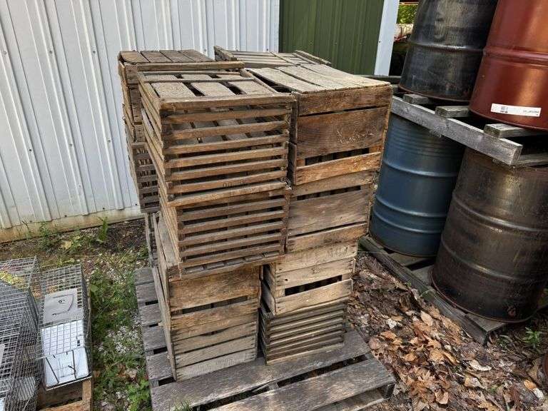 SKID OF ASSORTED 1 BU APPLE CRATES