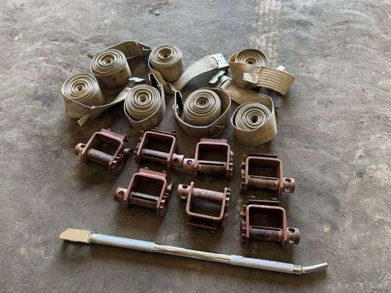 4'' STRAPS (7) TRAILER/TRUCK MOUNTED RATCHETS (7), INCLUDES BINDER/RATCHET BAR