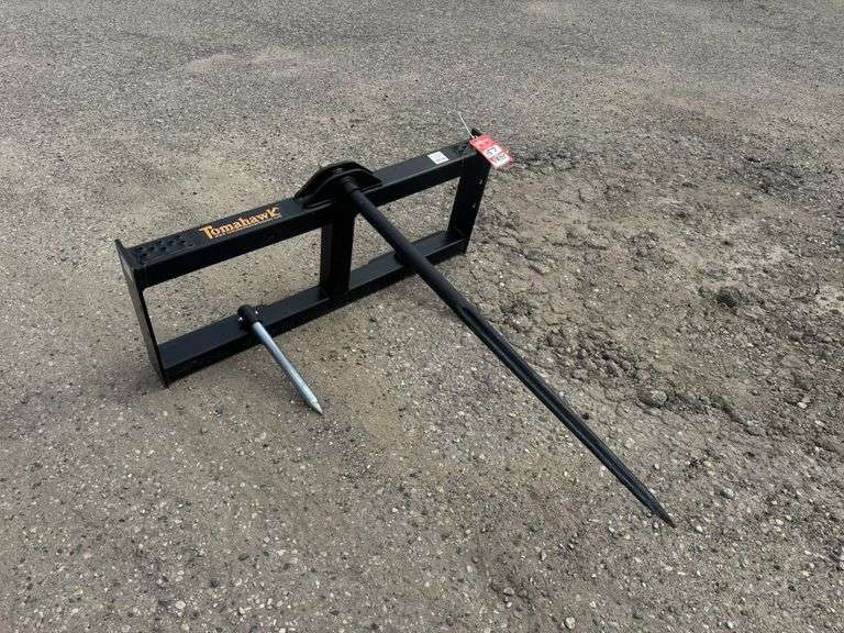 TOMAHAWK BALE SPEAR ATTACHMENT, (1) 48'' SPEAR, (2) 18'' SPEARSSKID STEER QUICK ATTACH (3024-2) ** EQUIPMENT QUESTIONS CONTACT: Jeremy Miedema - 616-460-7619, ITEM LOCATION: 3450 12th St. Wayland, MI 49348